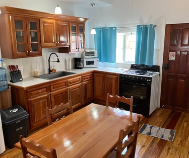Our apartments provide extra space and comfort with full amenities and porches. They are located approximately 100 meters south of the main property and have their own parking. The two bedroom and studio are located on the beach and the other two apartments are located just across the road. All have sea views. The apartments each have kitchenette and the two bedroom has a full kitchen.